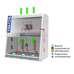 | Filters | Two, ULPA filter, ≥99.9995% efficiency at 0.12 μm, filter life indicator | ||||