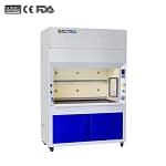 FMH (A) series ducted fume hood is designed as a negative pressure ventilation system that ensures the safety of operators and the laboratory environment. It works by drawing room air inward through the front opening of the hood and continuously ventilating it with an extraction blower. This prevents the spread of contaminated fumes, vapors, toxic gases, aerosols, and corrosive substances that may be generated during experiments. Furthermore, an optional active carbon filter can purify the polluted air before it is exhausted through the duct, thereby protecting the outdoor environment as well.